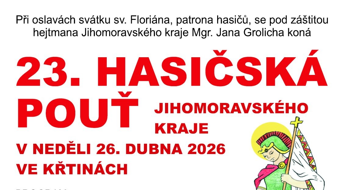 Při příležitosti oslav svátku svatého Floriána, patrona hasičů, bude farnost Křtiny a městys Křtiny, ve spolupráci s SDH Křtiny, SDH Kanice, SDH Bukovina SDH Habrůvka a SDH Babice n. Sv., pořádat 26.dubna 2026 hasičskou pouť.