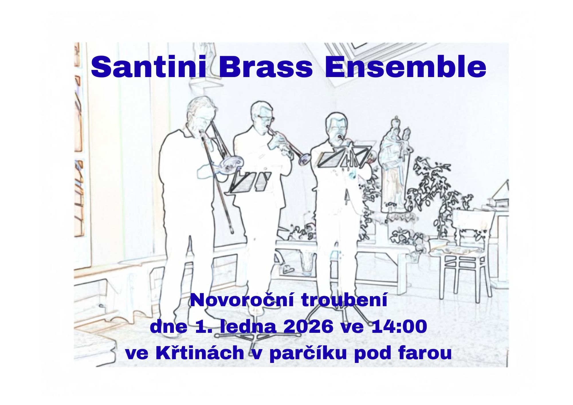 Santini Brass Ensemble vás srdečně zvou na Novoroční troubení ve čtvrtek 1. ledna 2026 ve 14.00 v parčíku pod farou ve Křtinách