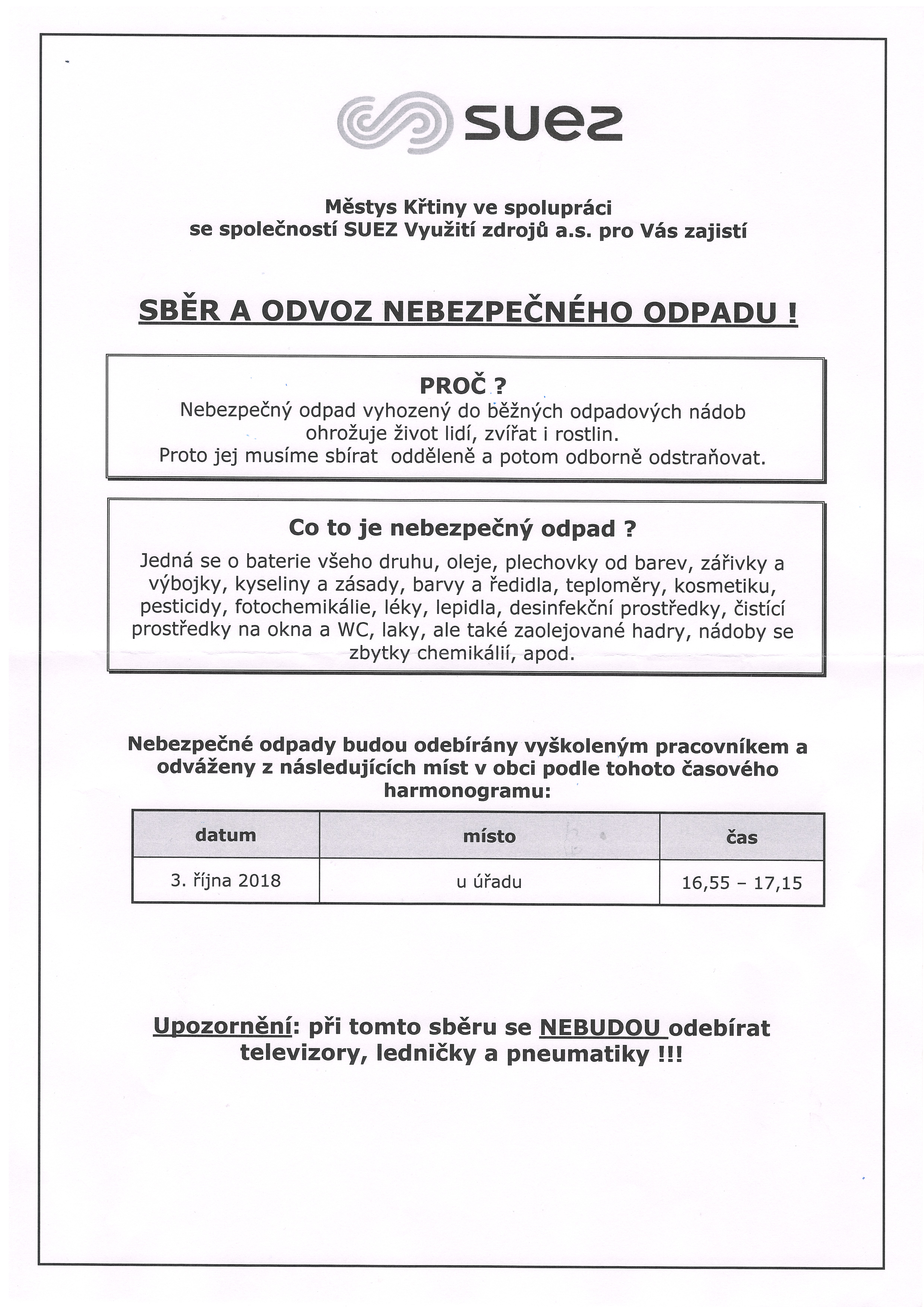 Sběr a odvoz nebezpečného odpadu se uskuteční
