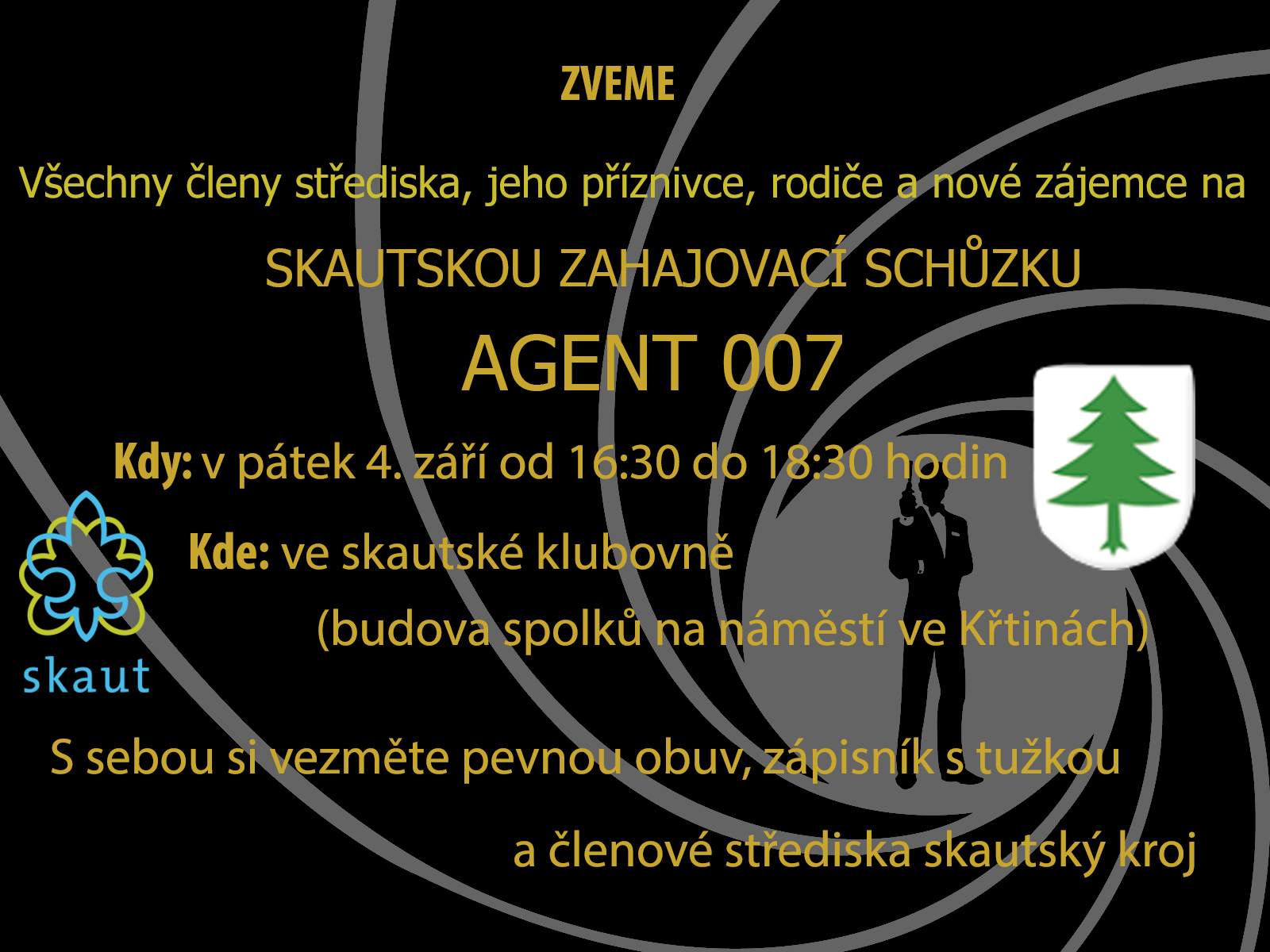 Nový skautský rok zahájí křtinské středisko v pátek 4.9.2015 od 16.30 schůzkou ve stylu AGENTA 007